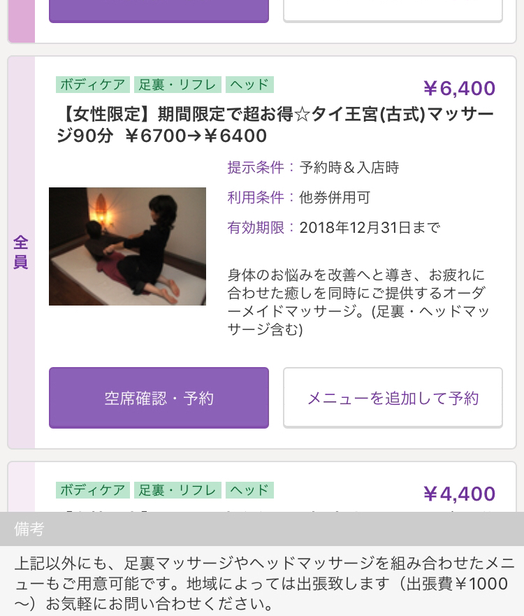 ネット予約がお得です 2018年10月2日 | コメントはまだありません ホットペッパービューティからご予約いただくと 、タイ王宮マッサージ90分コースが6400円でご予約可能でございます。 期間限定になります。 是非この機会にご利用くださいませ。 Categories: お知らせ, サロン
