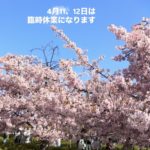 臨時休業のお知らせ 2026年2月9日 | コメントはまだありません いつも当サロンをご利用いただきありがとうございます。 2月11日〜13日まで臨時休業致します。 14日は予約満了の為、15日からご予約が可能です。 どうぞよろしくお願いします。 Categories: お知らせ, サロン